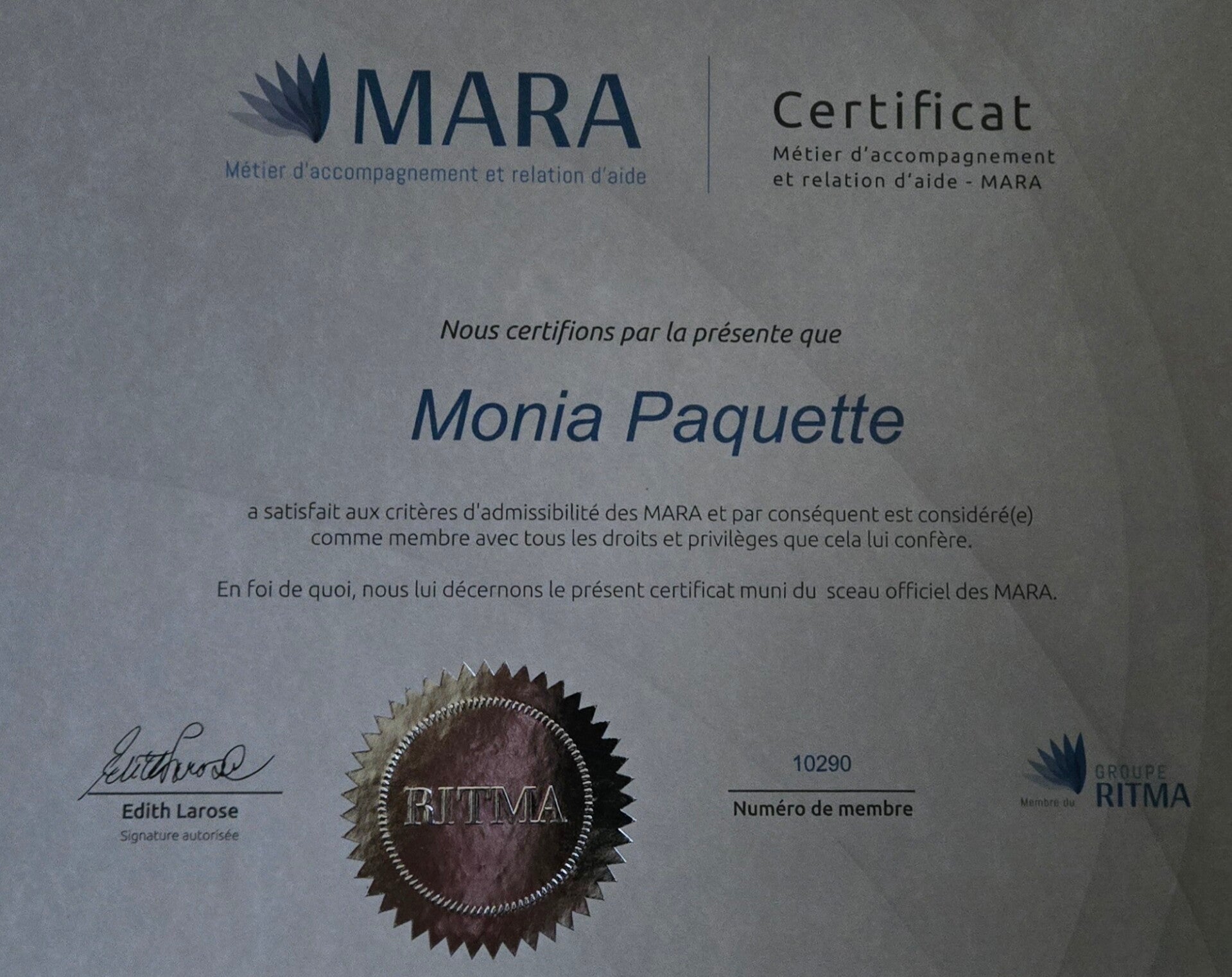 Notre approche de la relation d'aide se distingue par une posture professionnelle, une attitude relationnelle et un respect de l'éthique, basées sur la formation MARA (Méthode d’Accompagnement et de Relation d’Aide), reconnue par l’association RITMA. L’objectif premier est de favoriser l’autonomie et le mieux-être dans un cadre sécurisant et respectueux.